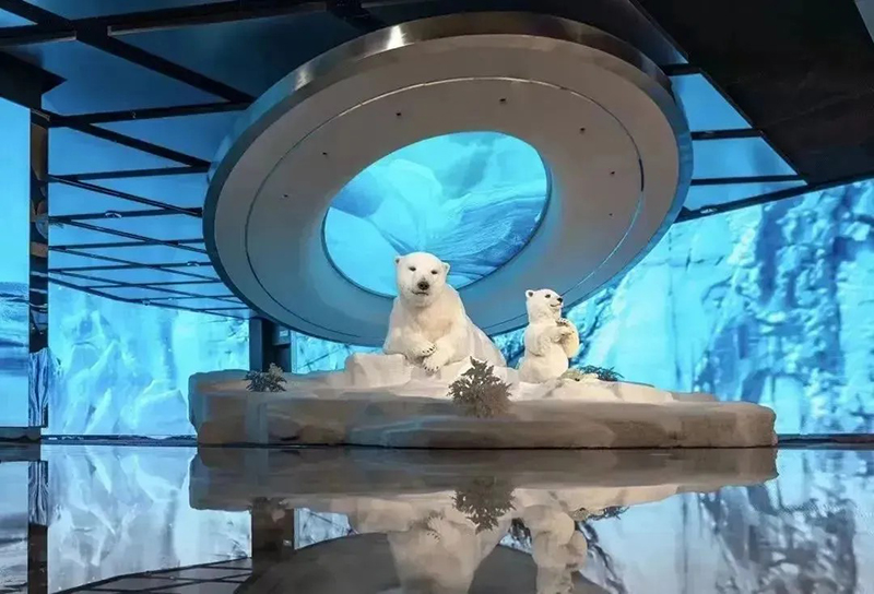 正如北京SKP-S內(nèi)的“未來農(nóng)場”以仿生羊為亮點,成都“平行世界”里猩猩漫步太空引人遐想,武漢SKP亦在負一層SKP-S精心構(gòu)建了特色主題藝術(shù)空間《EARTH 2124》。該空間巧妙劃分為三大區(qū)域:北極熊區(qū)《無邊的浮冰》,寓意著冰川的消融與生命的掙扎;走廊區(qū)《新大陸架》,象征著未來世界的重構(gòu)與探索;企鵝區(qū)《覆羽》,則是對極地生物適應(yīng)環(huán)境、重獲新生的美好愿景。整個空間緊扣“以未來之眼審視全球變暖,攜手極地生靈共繪新篇章”的深刻主題。