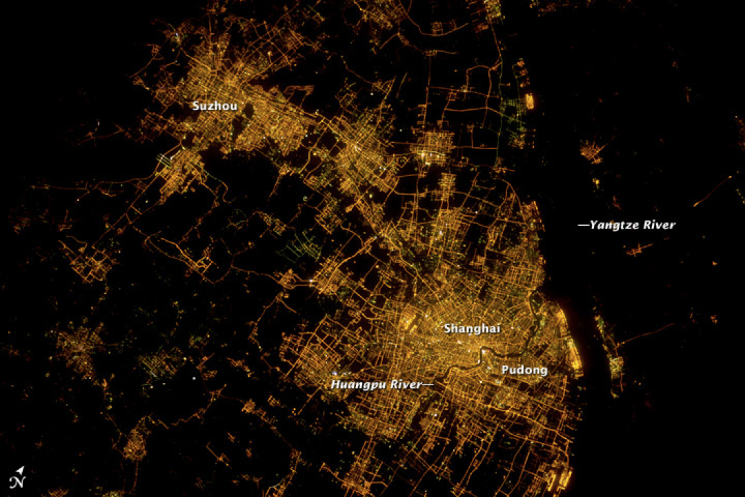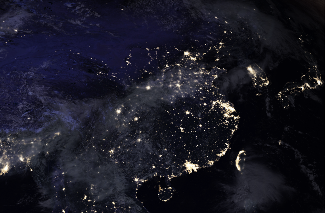 nasa公布的中國(guó)夜間燈光地圖顯示,2016年